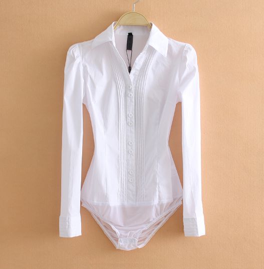 Fundo de renda com elastano e punho com botões duplos e pregas.