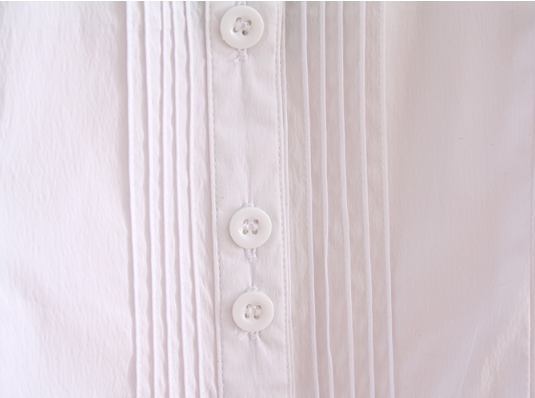 Botões com espaçamentos duplos e pregas frontais.